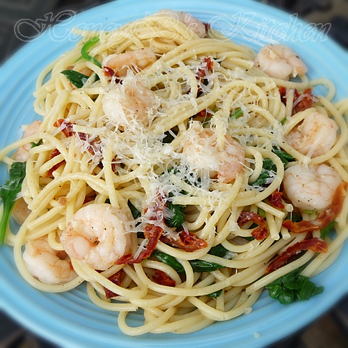 Garlic Shrimp with spinach is wonderful. The only thing I change is to use angel hair pasta.